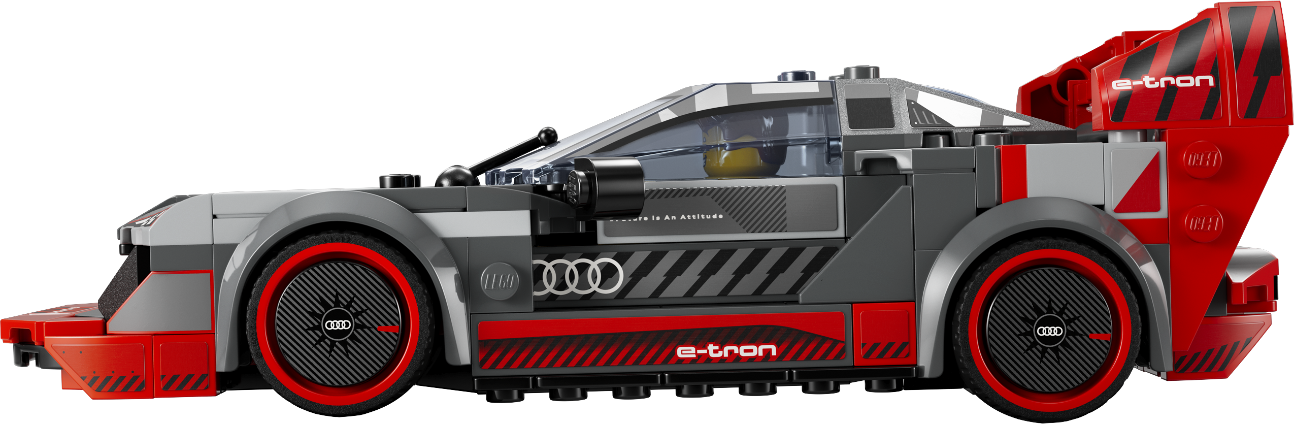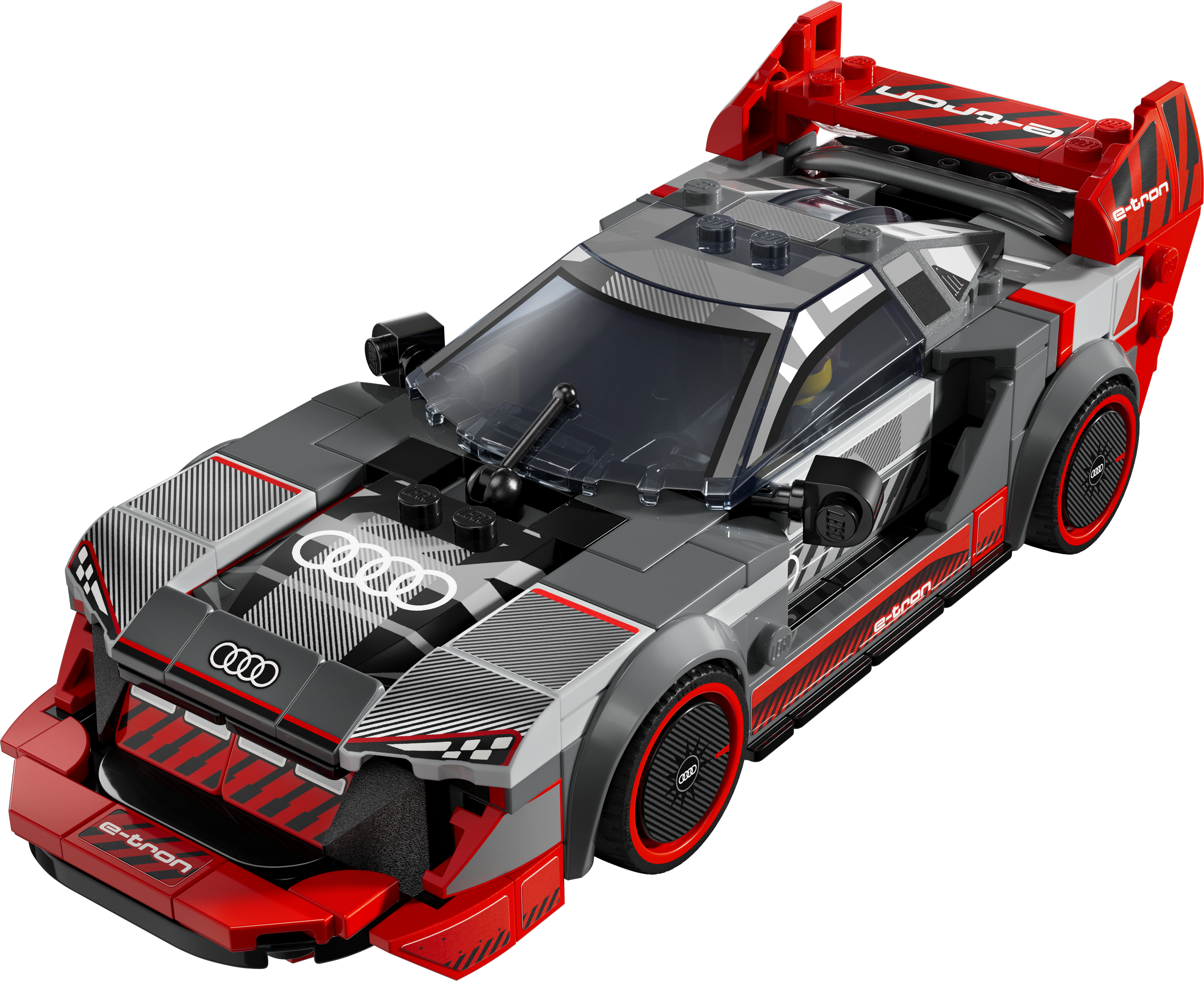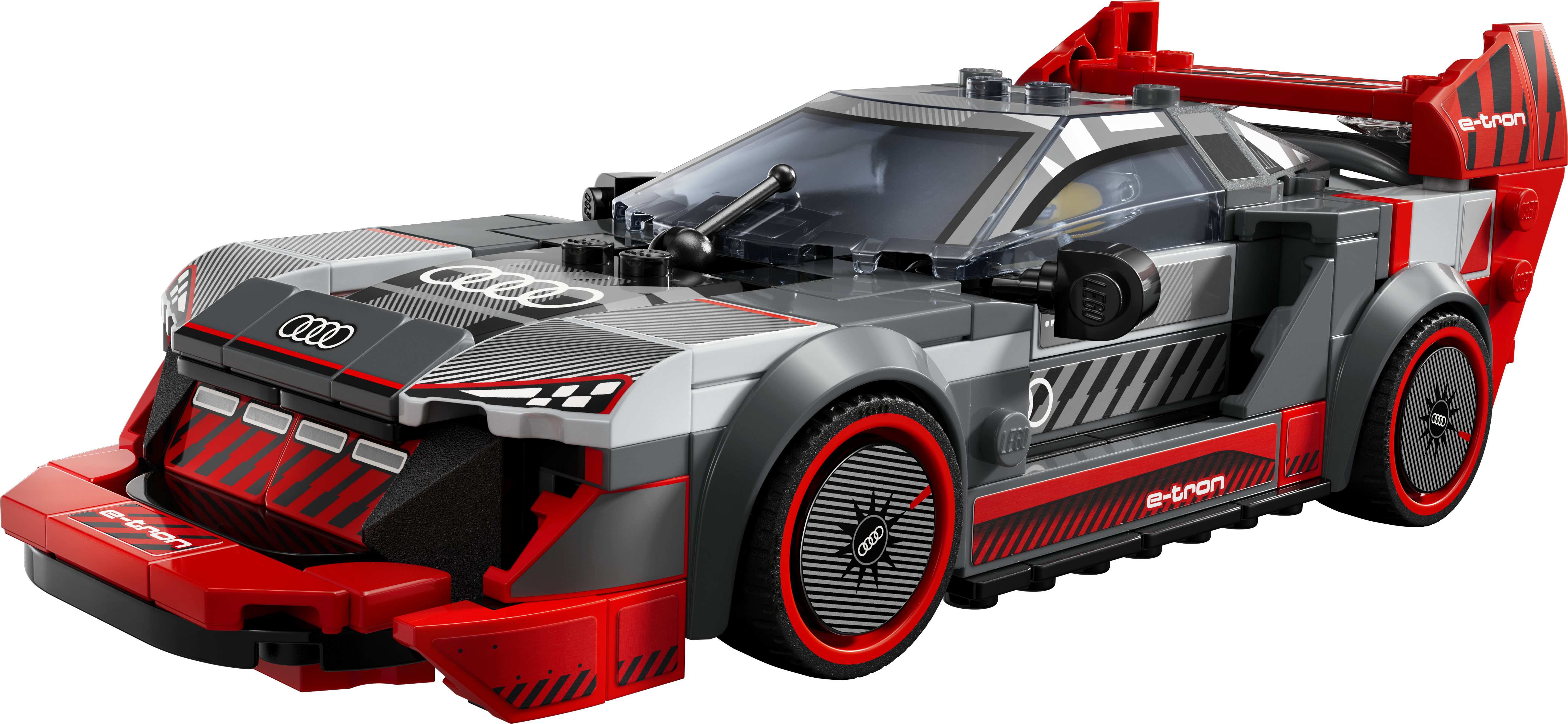 El coche de carreras LEGO® Speed Champions Audi S1 e-tron quattro es la impresionante réplica LEGO del Audi S1 e-tron quattro, desarrollado especialmente por Audi para la leyenda del drifting Ken Block en 2022. Está inspirado en el Audi Sport quattro S1 de la década de 1980. El coche LEGO para construir tiene los mismos detalles de diseño que el original: un gran alerón trasero, un difusor trasero, un largo capó, un splitter delantero y un interior detallado que incluye un salpicadero. Gracias al techo desmontable, los niños pueden colocar en el coche a la minifigura del piloto de carreras y lanzarlo a emocionantes carreras.